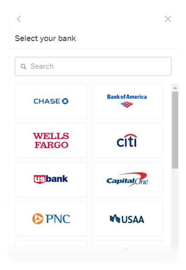 Select or Search for Your Bank